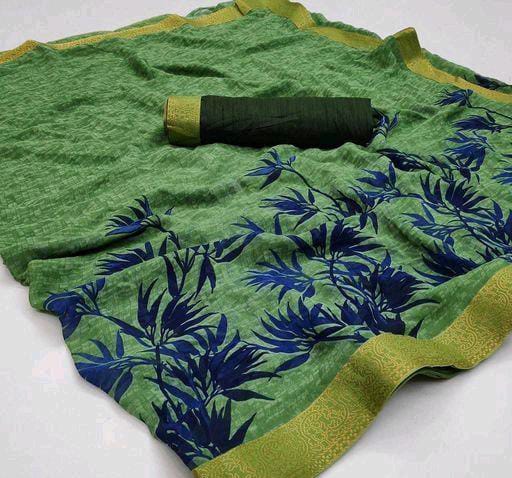 Aagam Elegant Green Printed Sarees