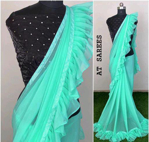 Be the first to review “Aqua Blue Georgette Sarees with Ruffle”