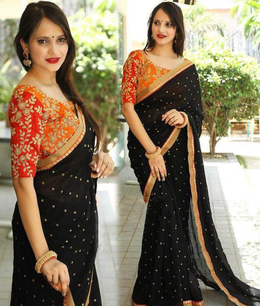 Bring out the best in you wearing this saree . Made of Georgette. this saree is super comfortable to wear. This Saree Length Size: 5.5 m, Blouse Length Size: 0.8 m