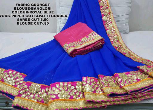 Paper Gota Patti Border Blue With Pipin Georgette Sarees