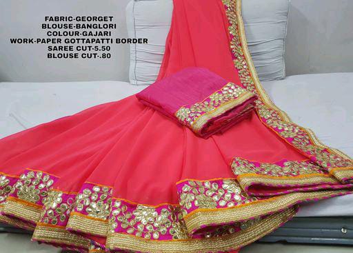 Paper Gota Patti Border Gajari With Pipin Georgette Sarees
