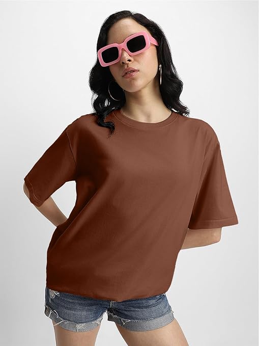 Pure Cotton Oversized Baggy Fit Half Sleeve Drop Shoulder Plain Solid Round Neck T-Shirt for Women. This women’s t-shirt is so trendy and cute, you can pair this knot side shirts with jeans and Pants to give a comfy look. Made of soft and breathable cotton blend fabric for comfort and durability. Classic Round Neck half sleeve tee with very decent and attractive.