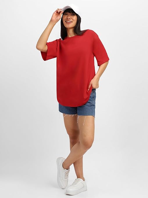 Pure Cotton Oversized Baggy Fit Half Sleeve Drop Shoulder Plain Solid Round Neck T-Shirt for Women. This women’s t-shirt is so trendy and cute, you can pair this knot side shirts with jeans and Pants to give a comfy look. Made of soft and breathable cotton blend fabric for comfort and durability. Classic Round Neck half sleeve tee with very decent and attractive.