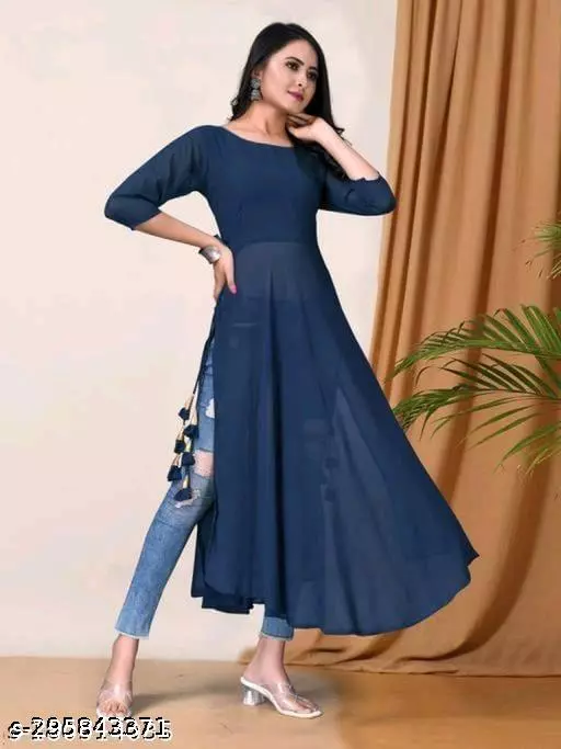 Stylish Blue Women Georgette A-Line Kurti