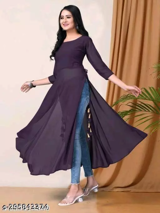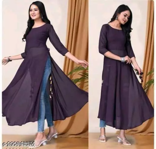 Be the cynosure of all eyes by wearing this wine women georgette kurti. Kurti crafted from georgette fabric, it is light in weight and will be soft for your skin. This kurti has a soothing colour and will lend you a fresh look this season.