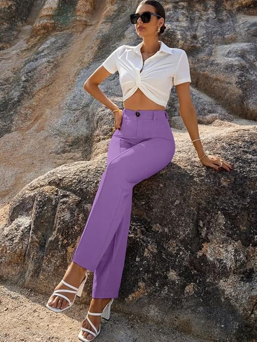 Women Bell Bottom Lavender Trousers.