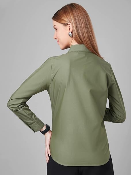 Women Cotton Regular Formal Olive Shirt.
