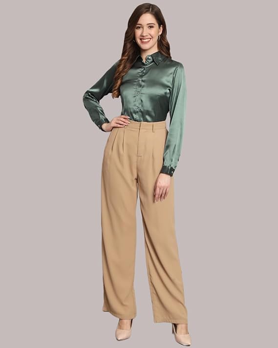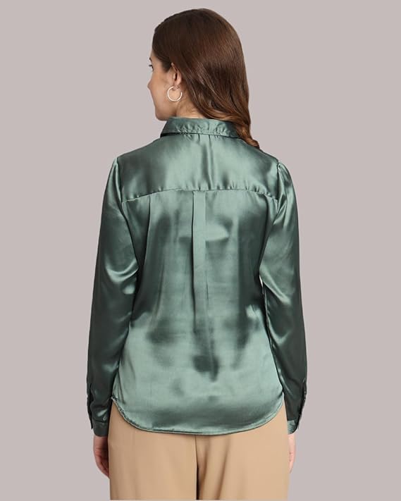 Women Formal Satin Greyish Green Shirt.