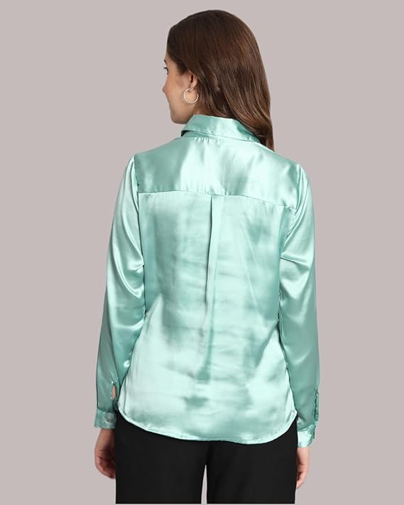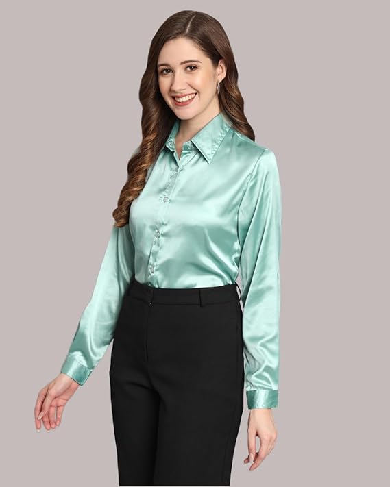 Women Formal Satin Sea Green Shirt.