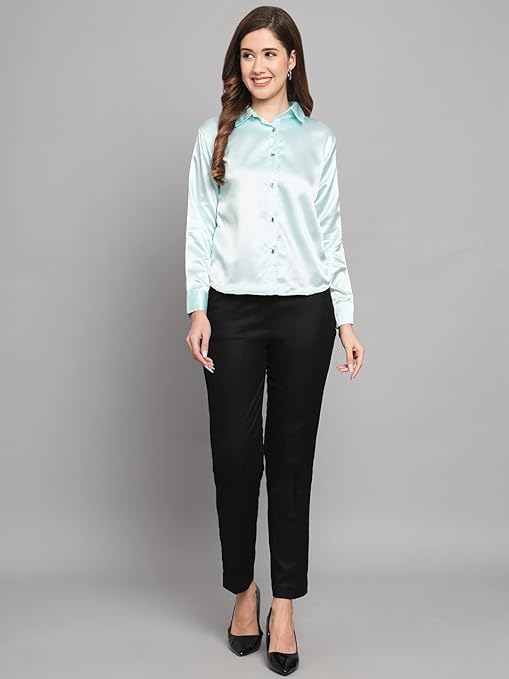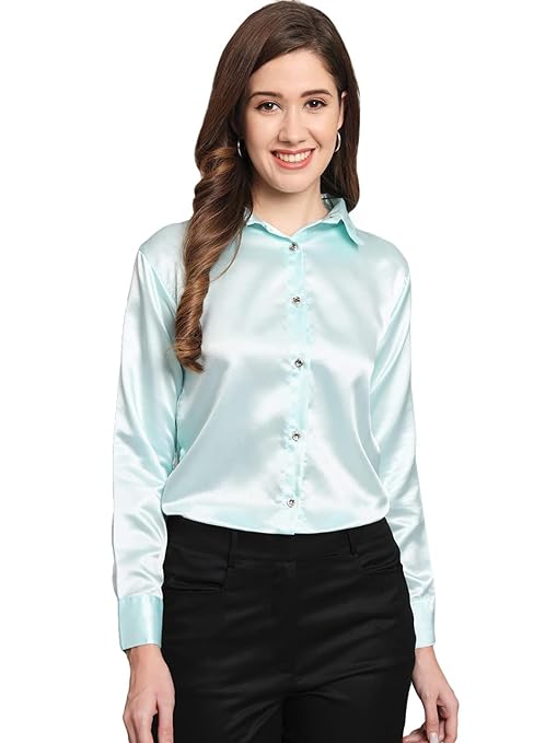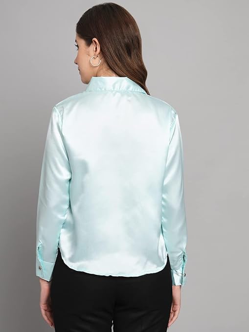 Women Formal Satin Sky Blue Shirt.