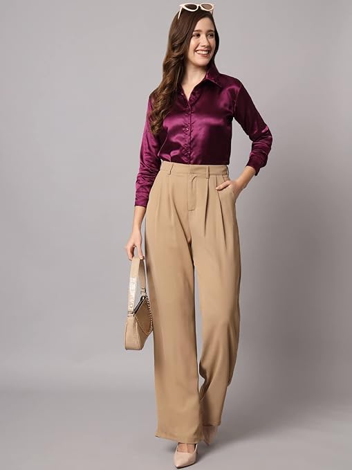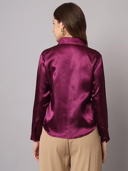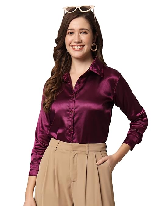 Women Formal Satin Wine Shirt.