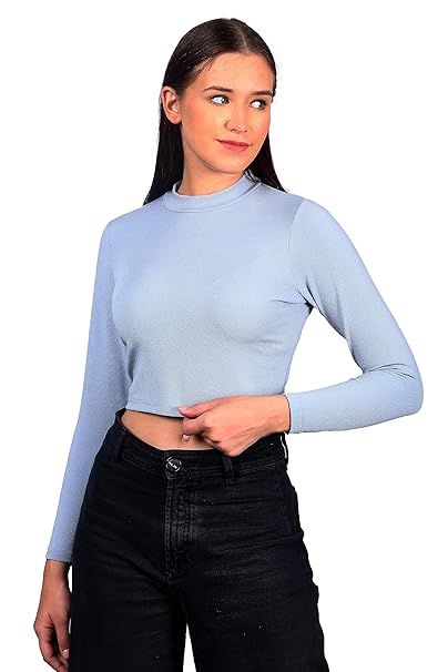 Soft stretch fabric fits like a second skin, Slim fit full sleeve turtle neck tops for women. Perfect suite for all occasions. This casual yet high neck crop top would look perfect paired with a denim mini skirt, round sunglasses, and ankle booties. Machine-washable on cold setting and safe to tumble dry on low heat with like colors, or, lay flat to dry.