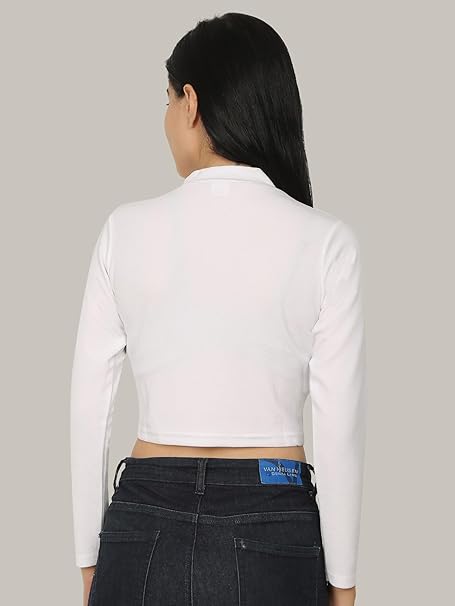 Women High Neck White Crop Top.