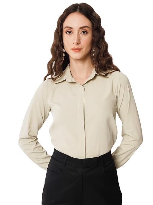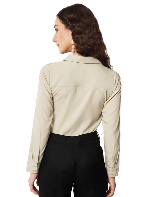 Women Office Wear Formal Beige Shirt.