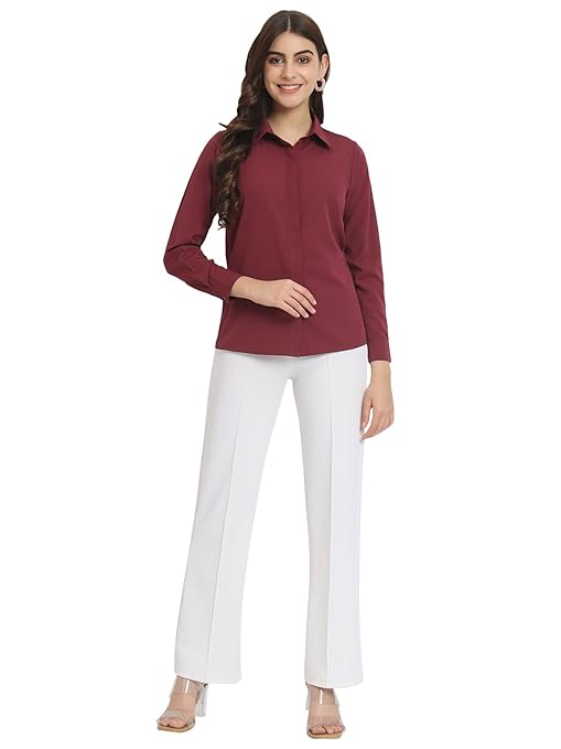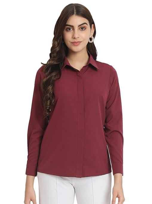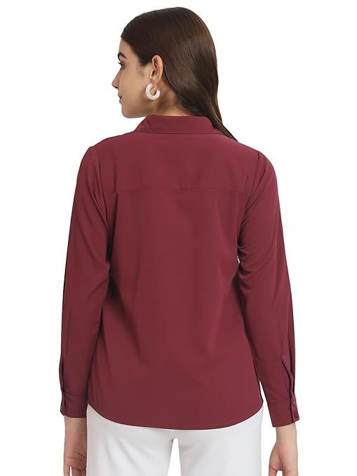 Women Office Wear Formal Maroon Shirt.