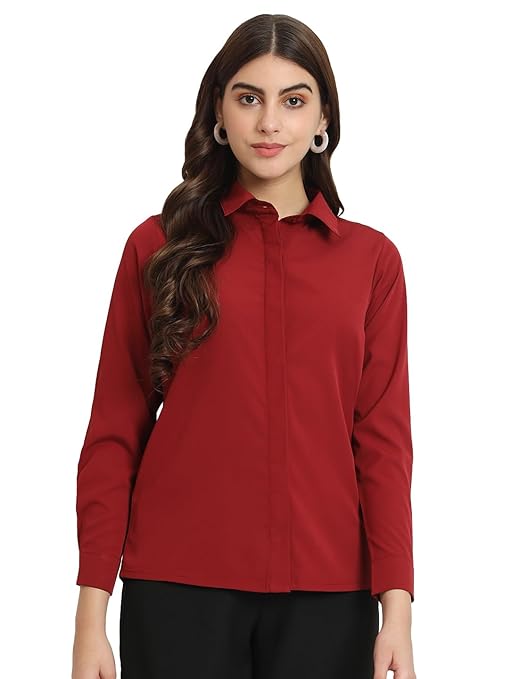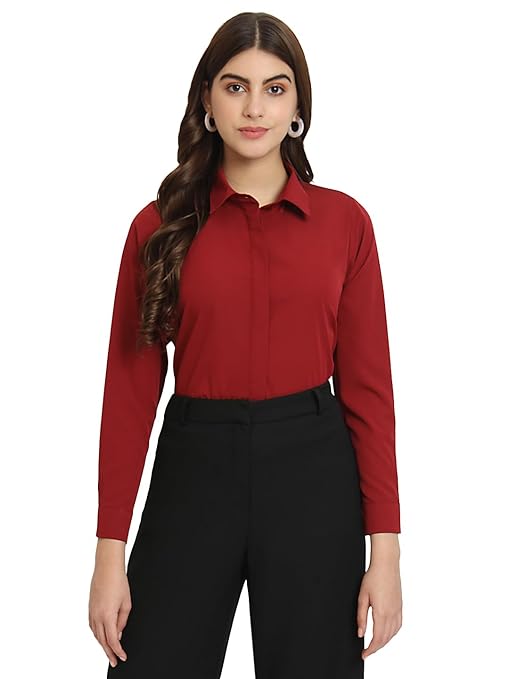 The fabric quality this shirt ensures excellent comfort, all day long. Made from soft fabric, this top will help you stay relaxed all day long. The most recent formal shirt from comes in a range of colours and is Solid and perfect for formal and casual wear. Both girls and women may wear the shirt for work or a casual hangout because it is made with well chosen colour combinations.