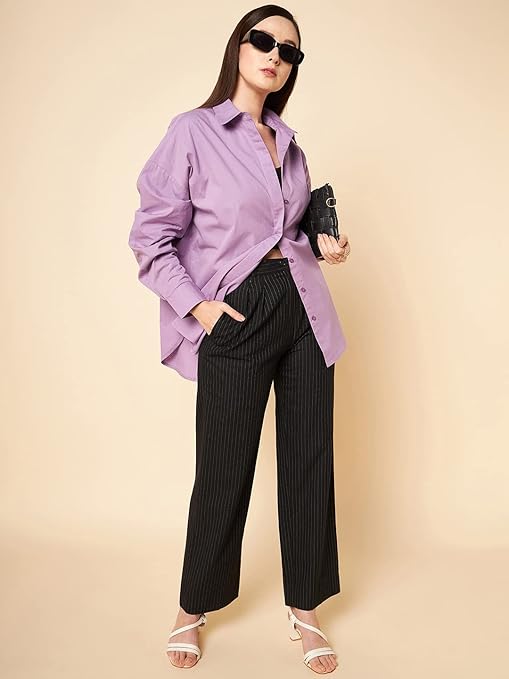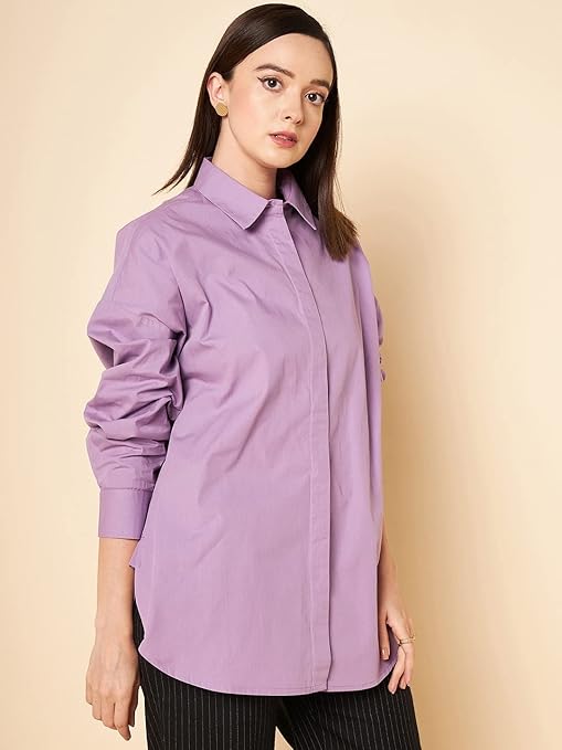 Women Oversized Cotton Lilac Shirt.