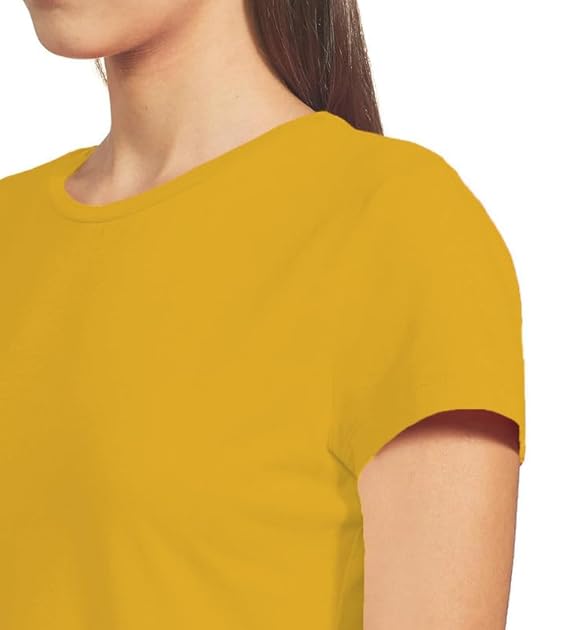 Women Plain Regular fit Mustard Yellow T-Shirt.