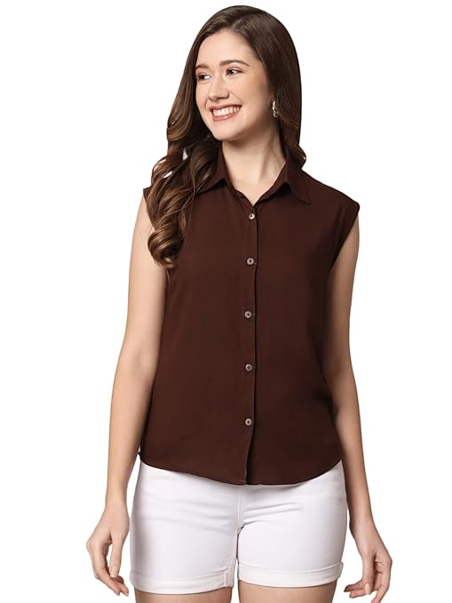 Be the first to review “Women Plain Sleevesless Brown Shirt”