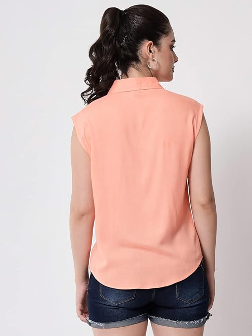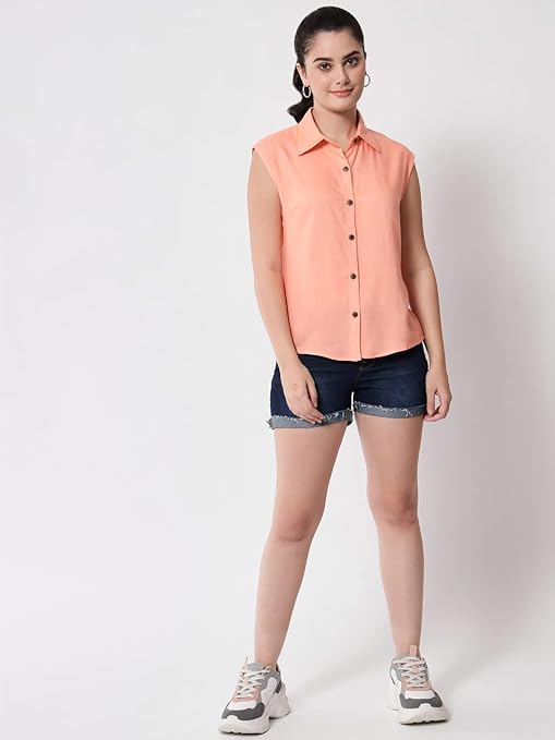 This Shirt has Spread Collar and Sleeveless and Cotton Fabric makes it one of the best in Wardrobe. It is Easy to Wear Shirt is a Perfect Combination of Comfort and Fashion. A Trendy Shirt like this one is bound to bring out the Feminine side in you and make you look oh so pretty.