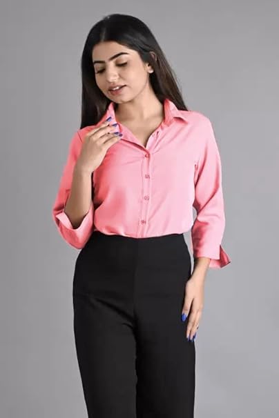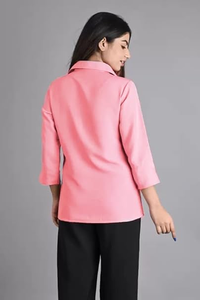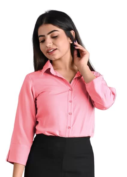 Women Plain Solid Formal Pink Shirts.