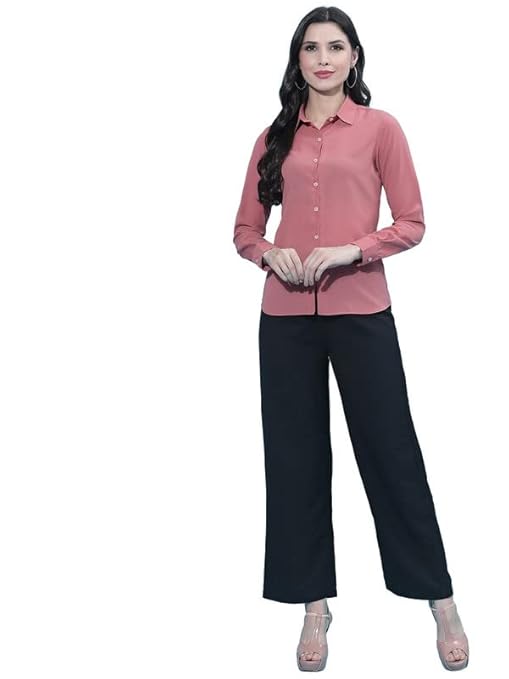 Women Poly Solid Carrot Pink Shirt.