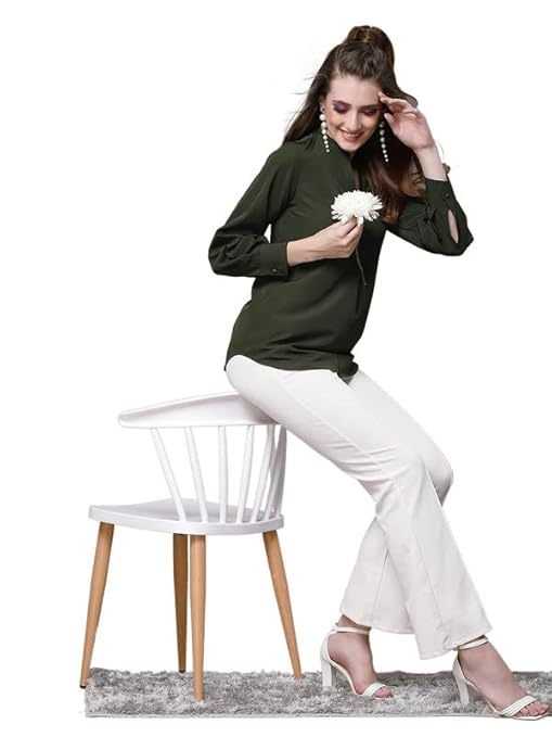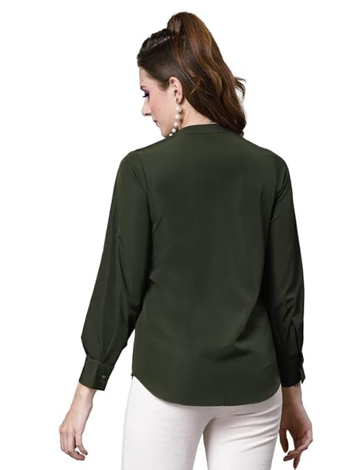 Women Poly Solid Mehndi Green Shirt.