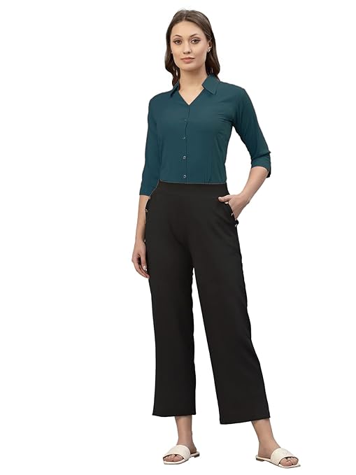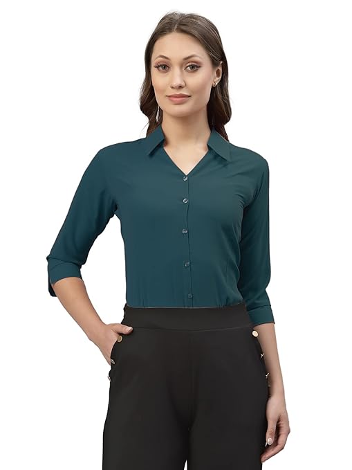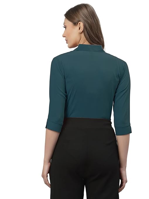 Women Poly Solid Teal Shirt.