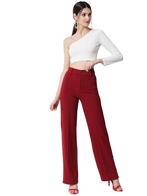 The women stylish solid pant are perfect pick for you.We offer a wide range of good quality attractive imported regular length casual pant. These straight fit pant are made with 98% polyester and 2% lycra fabric.Wear these solid high rise pant with top and heels depending on your preference.