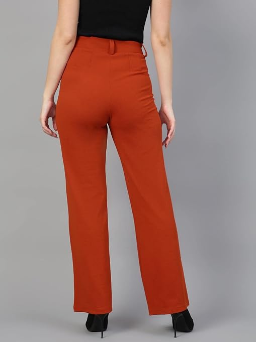 The women stylish solid pant are perfect pick for you.We offer a wide range of good quality attractive imported regular length casual pant. These straight fit pant are made with 98% polyester and 2% lycra fabric.Wear these solid high rise pant with top and heels depending on your preference.