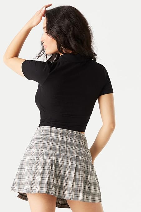 Women Ribbed Button Up Black Crop Top.