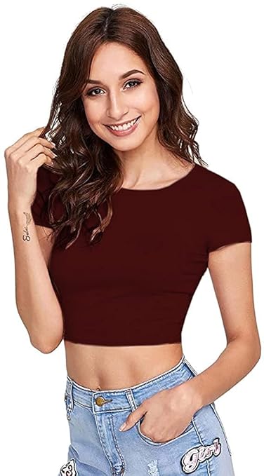 Short sleeves and a round neck, offering a timeless and versatile look that complements various outfits. Made from a soft, durable polyester blend, this crop top provides a comfortable and breathable fit, ideal for all-day wear. The lightweight material ensures ease of movement, perfect for casual outings, workouts, or lounging at home. Available in multiple colors, this crop top allows you to express your personal style while maintaining a chic and effortless look.