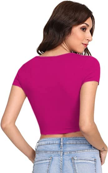 Women Round Neck Rani Pink Crop Top.