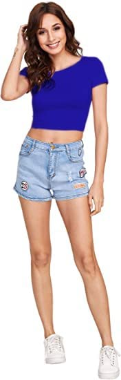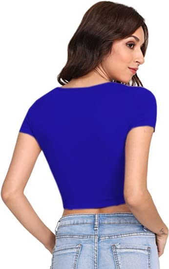 Women Round Neck Royal Blue Crop Top.