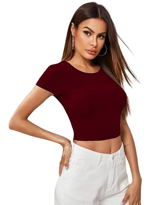 Features short sleeves and a round neck, offering a timeless and versatile look that complements various outfits. Made from a soft, durable polyester blend, this crop top provides a comfortable and breathable fit, ideal for all-day wear. The lightweight material ensures ease of movement, perfect for casual outings, workouts, or lounging at home. Available in multiple colors, this crop top allows you to express your personal style while maintaining a chic and effortless look.