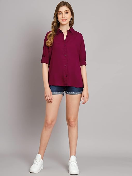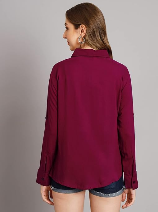 Be the first to review “Women Solid Casual Maroon Shirt”
