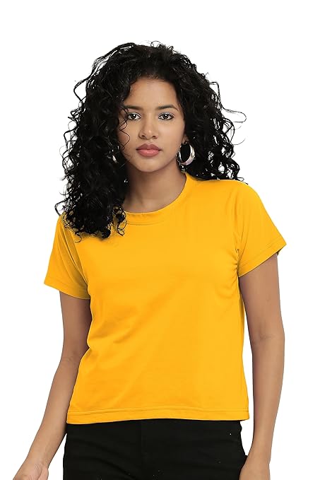 Solid round neck half sleeve cotton crop tops for ladies that effortlessly pair with jeans for a classic everyday look. Designed to suit all body types, these trendy tops create a lasting impression with their attractive style available in small, medium, large. Made from a soft, durable polyester blend, this crop top provides a comfortable and breathable fit. Machine-washable on cold setting and safe to tumble dry on low heat.