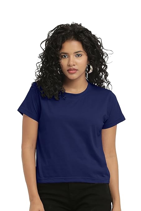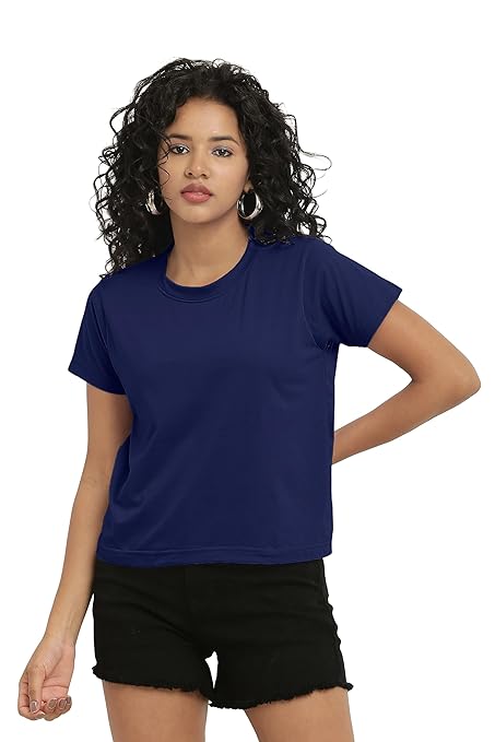 Solid round neck half sleeve cotton crop tops for ladies that effortlessly pair with jeans for a classic everyday look. Designed to suit all body types, these trendy tops create a lasting impression with their attractive style available in small, medium, large. Made from a soft, durable polyester blend, this crop top provides a comfortable and breathable fit. Machine-washable on cold setting and safe to tumble dry on low heat.