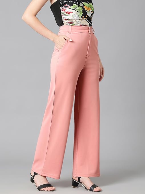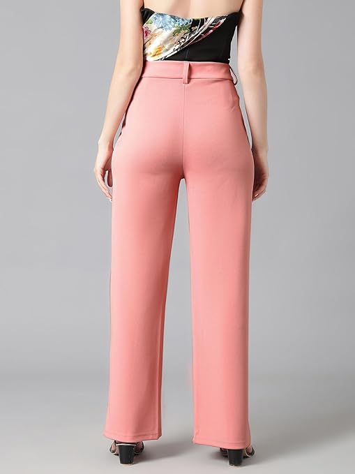 Women’s High Rise Baby Pink Cotton Fit Trousers.