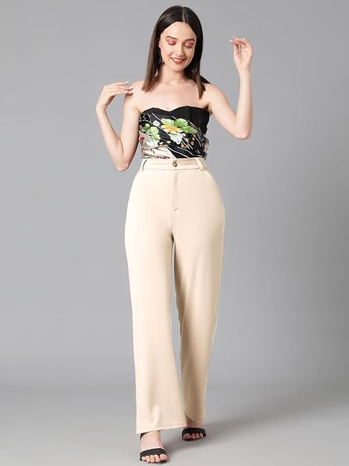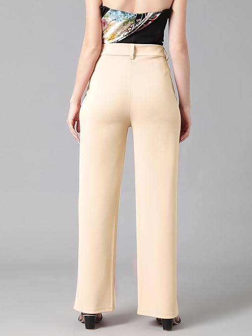 These women stylish solid pant are perfect for you. Well crafted in premium cotton blend for unmatched drape complemented by fine softness and a smooth touch for ease of wear, these are tailored in a stylishly designed straight fit, cross pocket with a high-rise silhouette to compliment your contours. Pair them with a contrast top for an alluring combination.