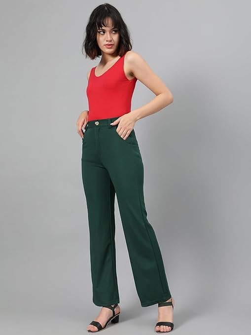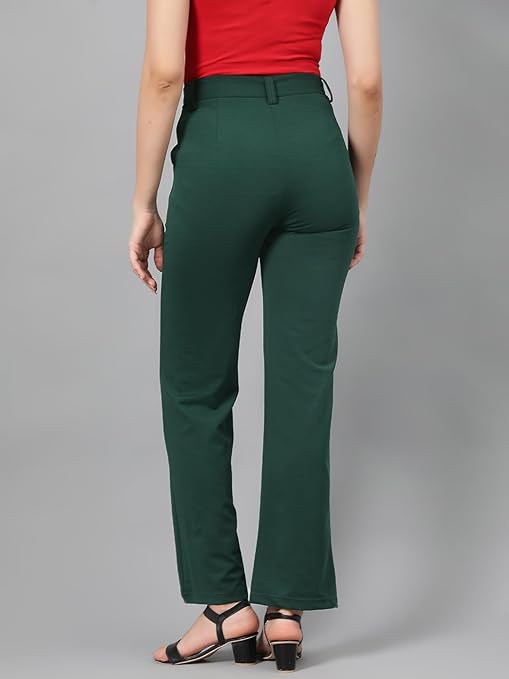 These women stylish solid pant are perfect for you. Well crafted in premium cotton blend for unmatched drape complemented by fine softness and a smooth touch for ease of wear, these are tailored in a stylishly designed straight fit, cross pocket with a high-rise silhouette to compliment your contours. Pair them with a contrast top for an alluring combination.