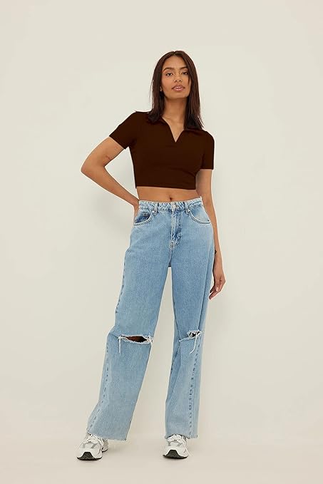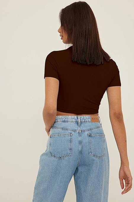 This knit top featuring a V-Collar Rib-Knit neckline, cap sleeves, and a crop straight closure at the hem. This casual yet chic top would look perfect paired with a denim mini skirt, round sunglasses, and ankle booties. Machine-washable on cold setting and safe to tumble dry on low heat with like colors, or, lay flat to dry.